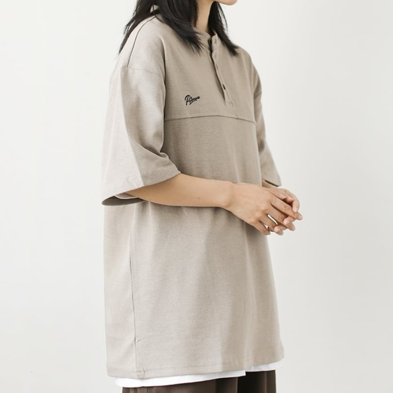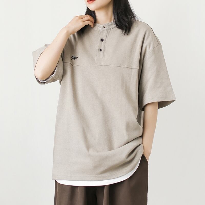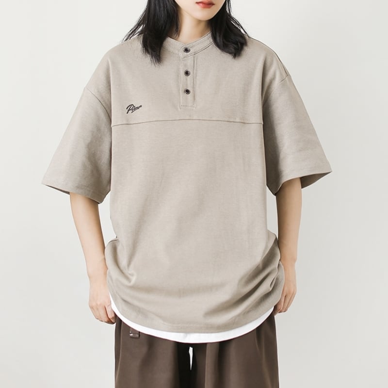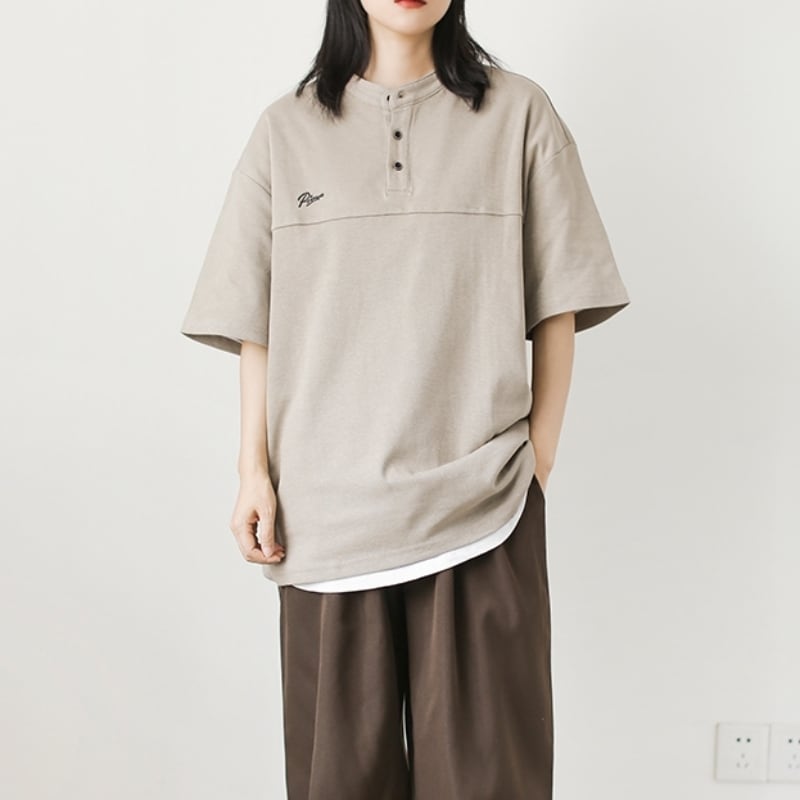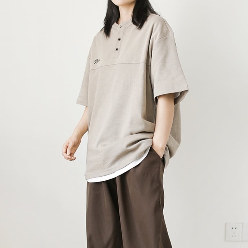Oversized Henry Neck Short Sleeve T-Shirt ‐2col‐ A0251