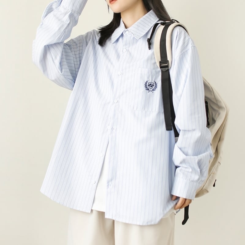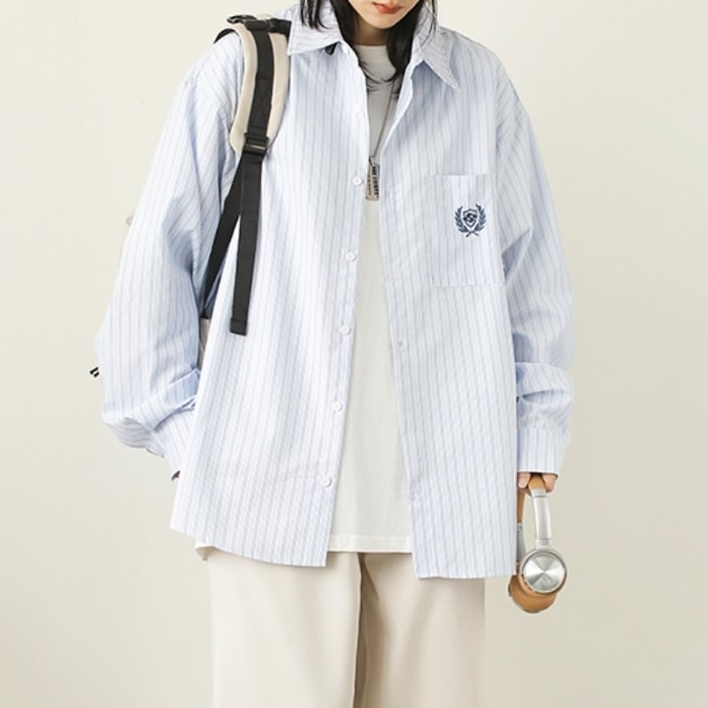 Striped Oversized Button-Down Shirt ‐2col‐ A0254
