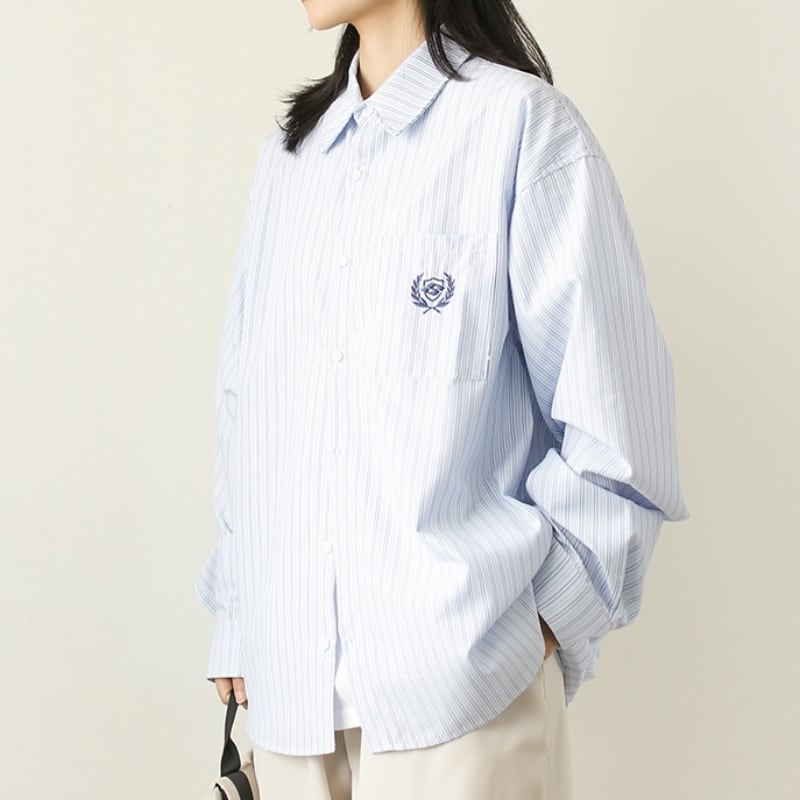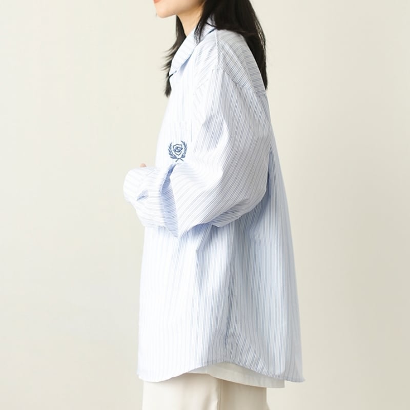 爽やかなストライプ柄が魅力のオーバーサイズシャツ。