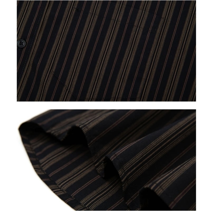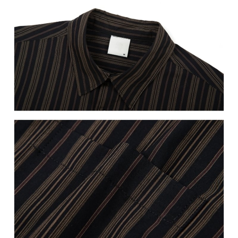 ゆったりとしたシルエットでリラックス感がありながら、ストライプ柄がスタイリッシュな印象を与えます。