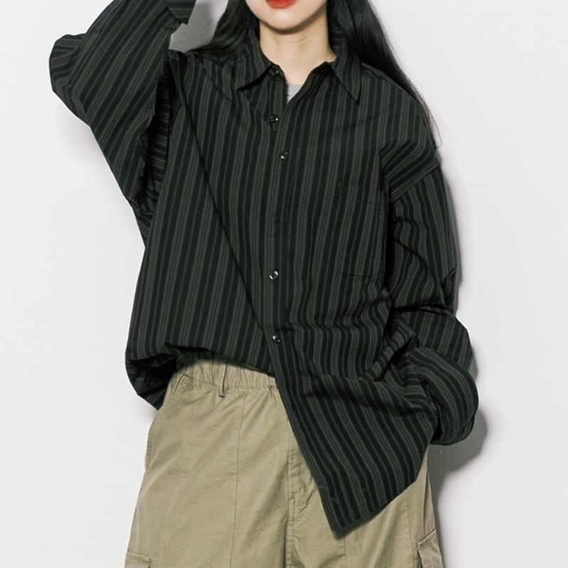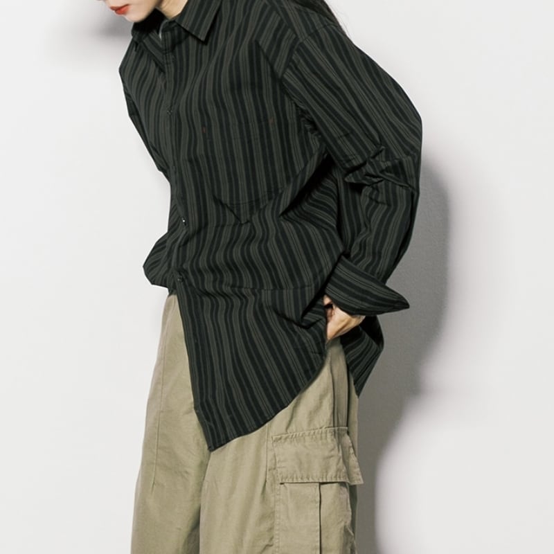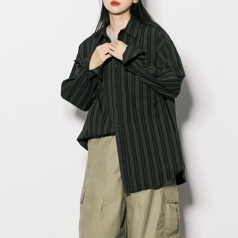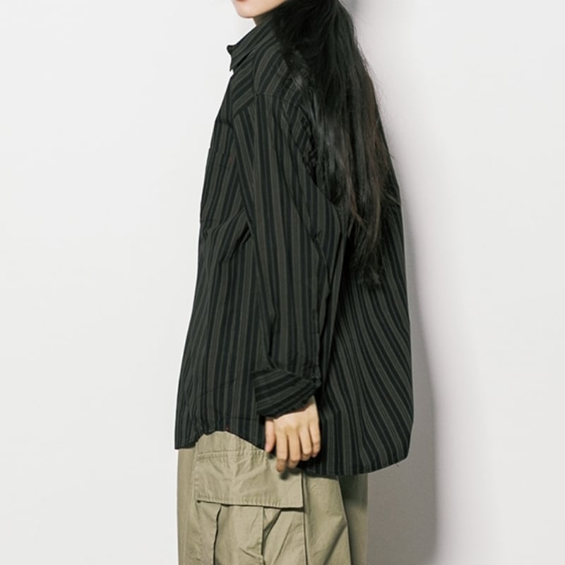 Stripe Pattern Oversized Long Sleeve Shirt ‐1col‐ A0266