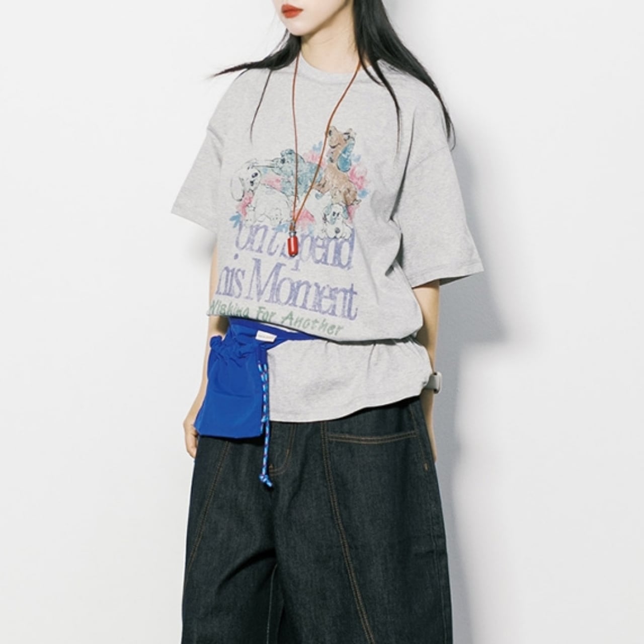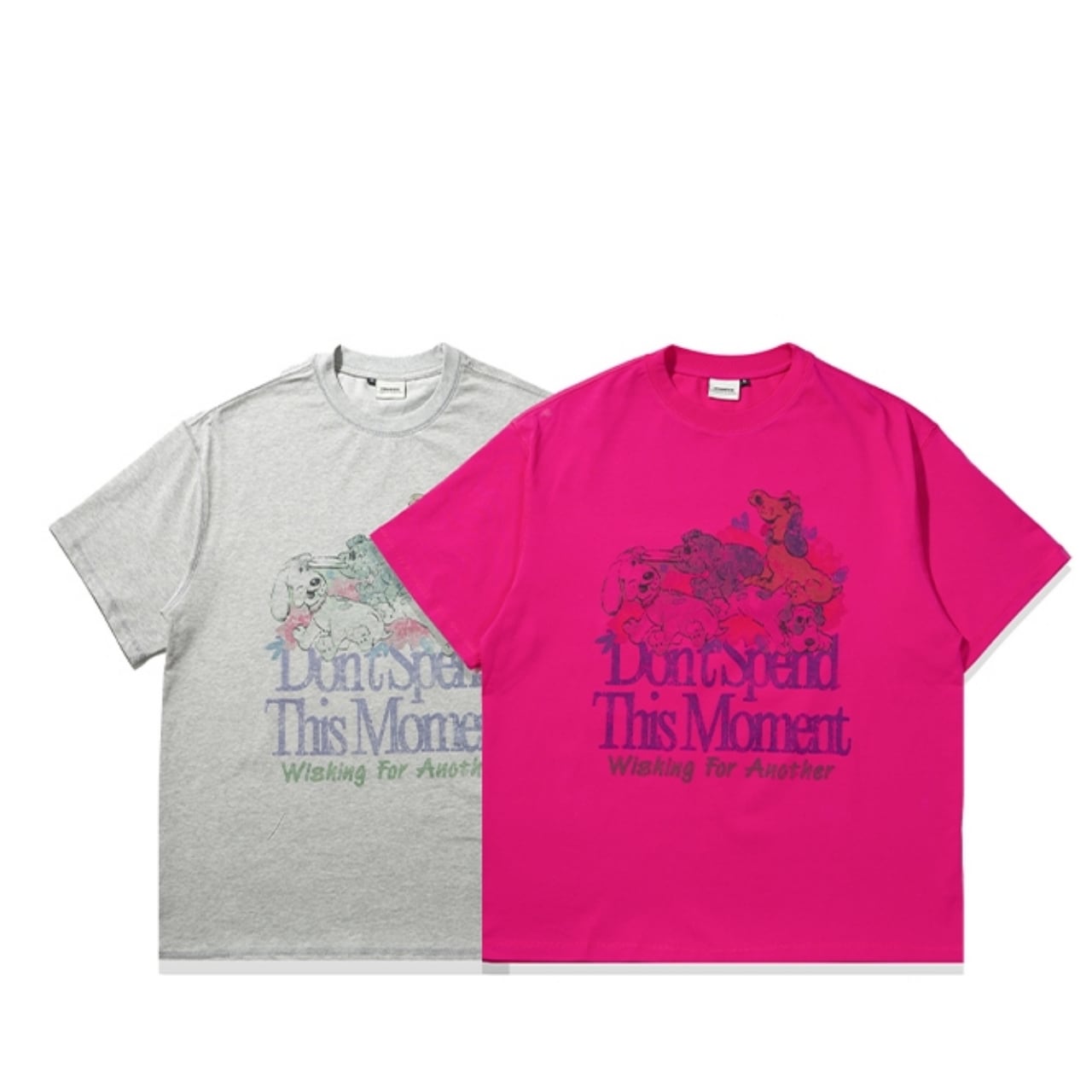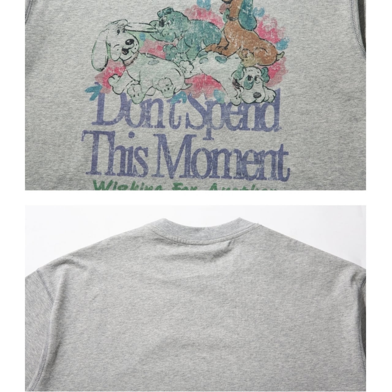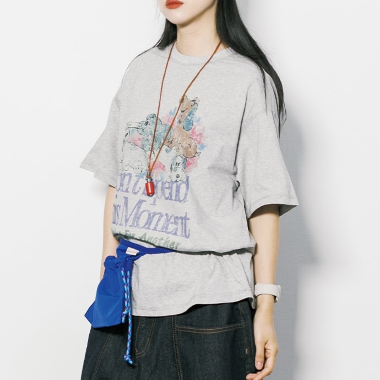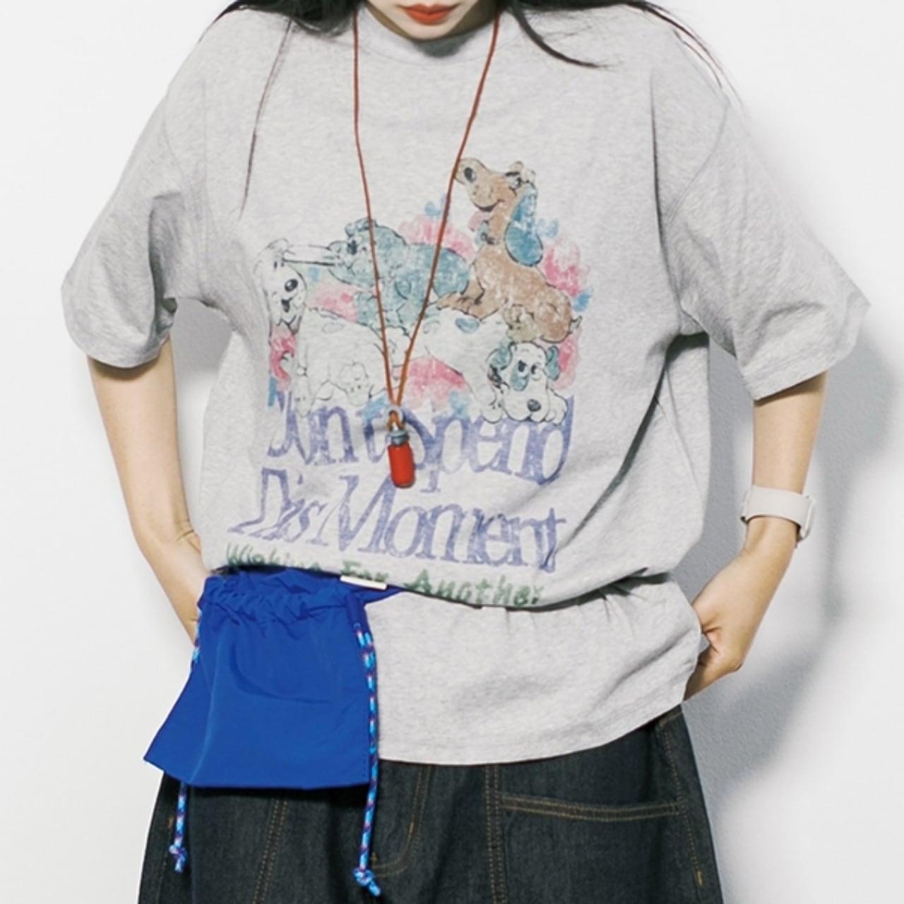 一枚でサマになる、愛らしい犬たちのプリントが目を惹くTシャツ。