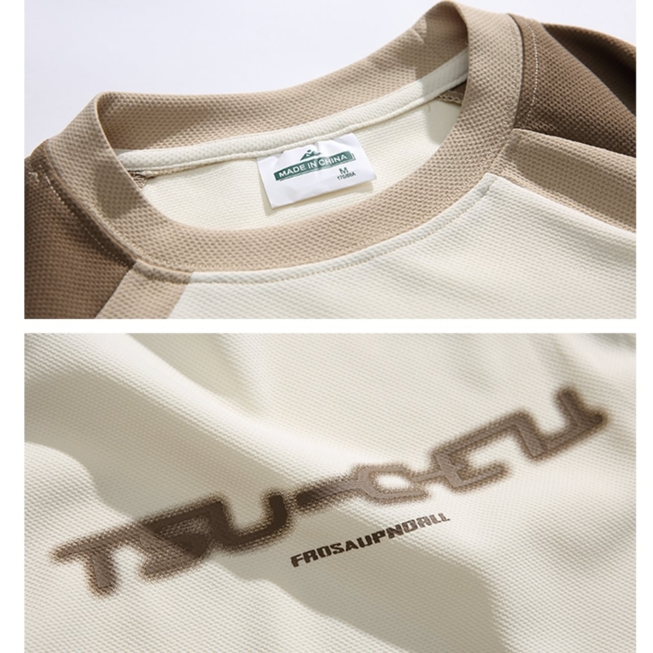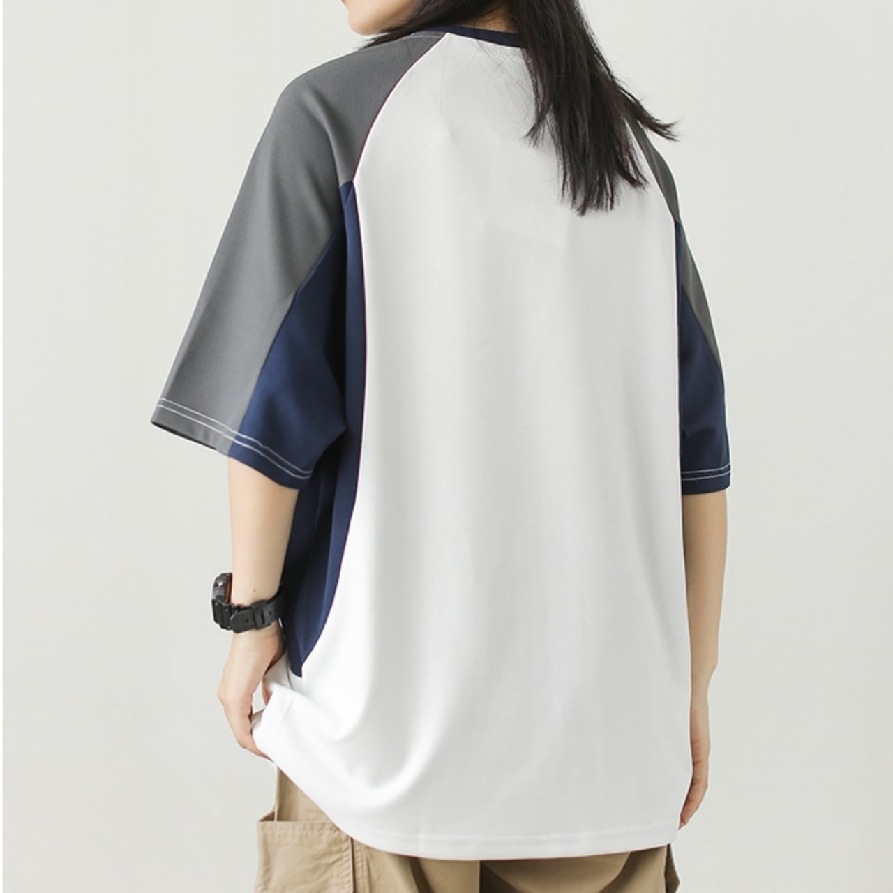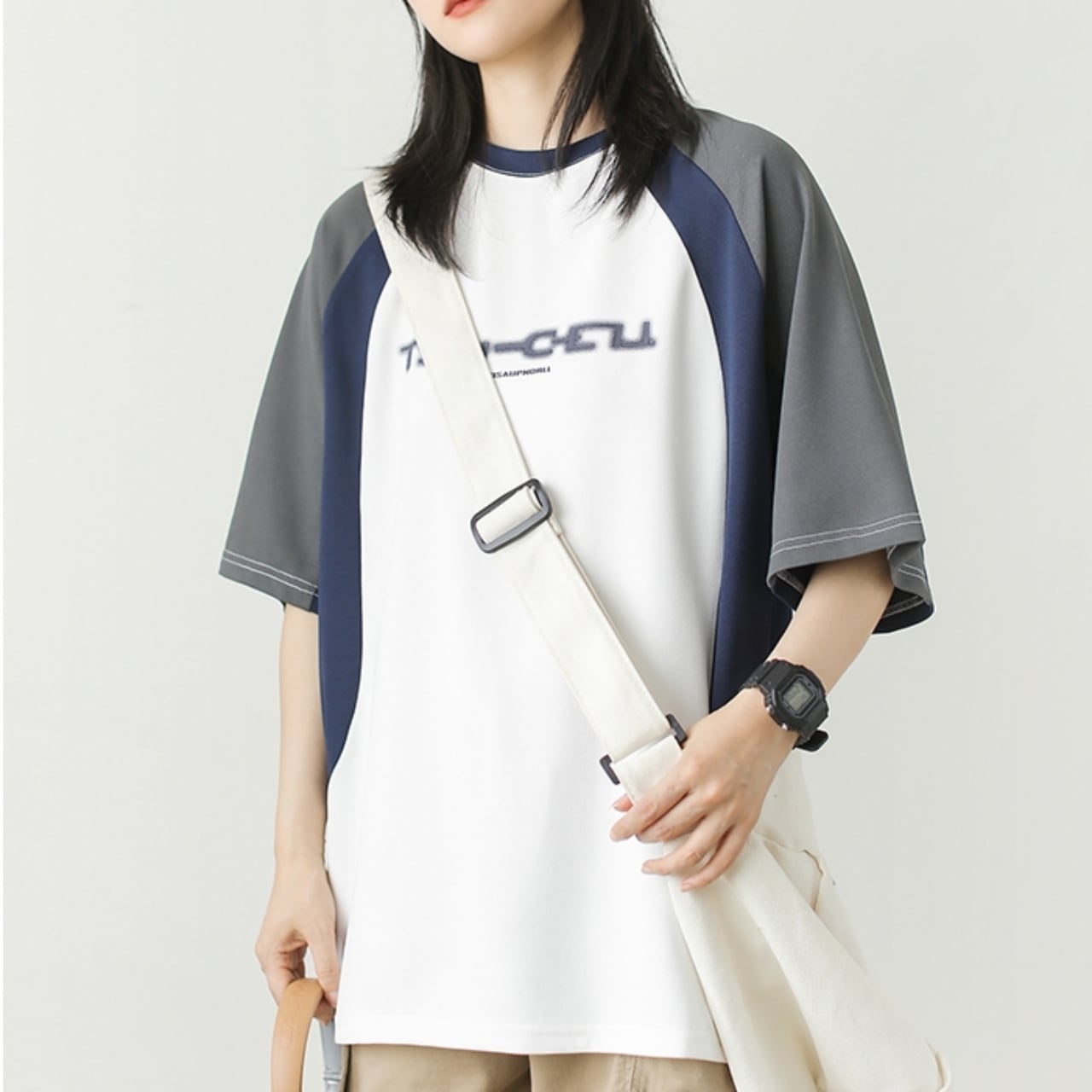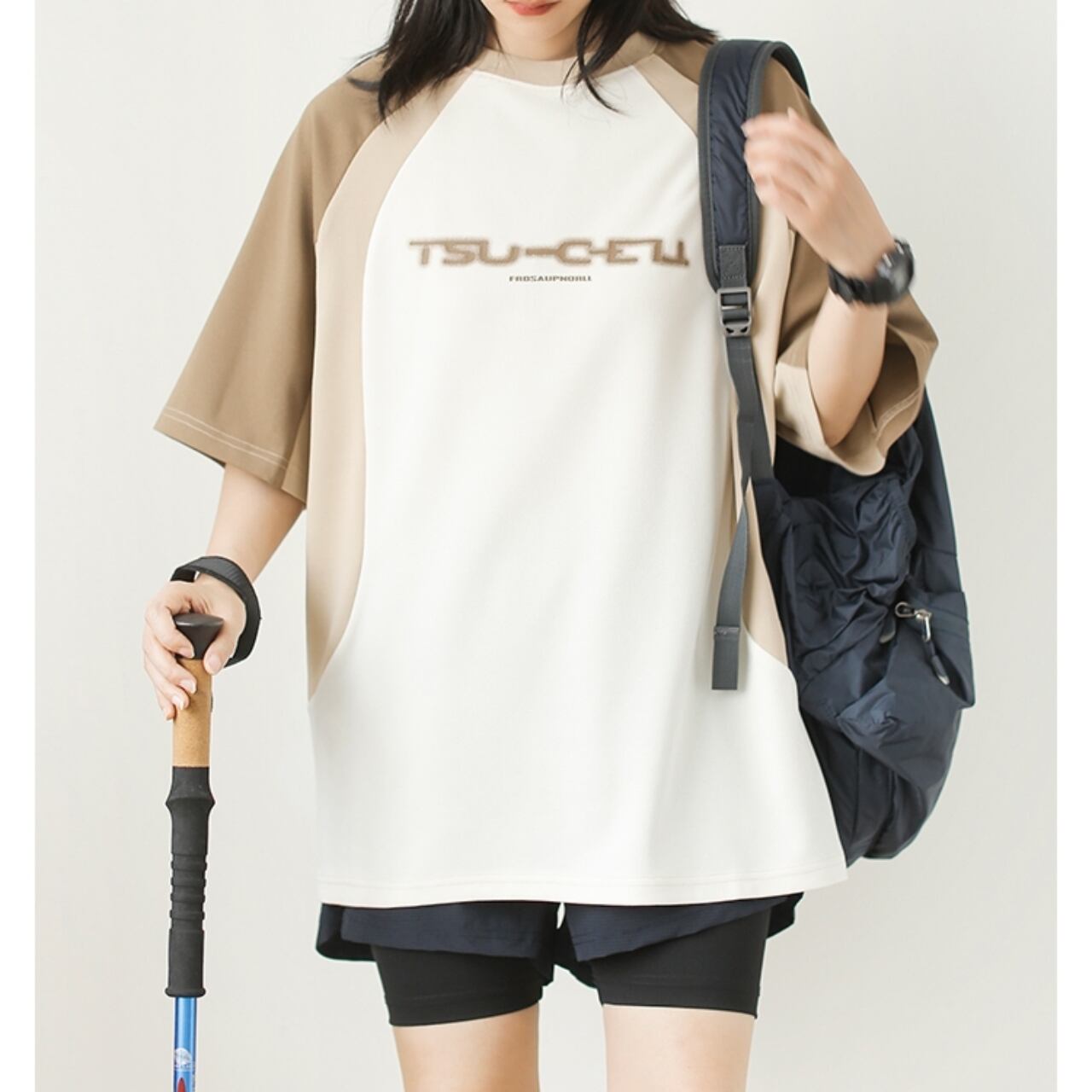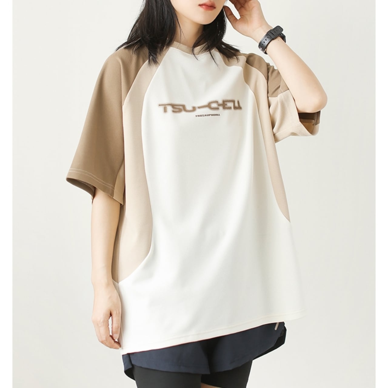 ロゴプリントが目を惹く、オーバーサイズのラグランスリーブTシャツ。