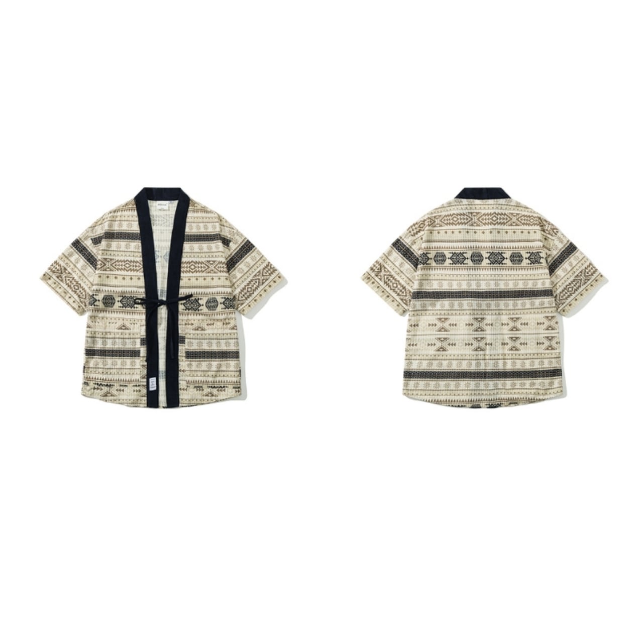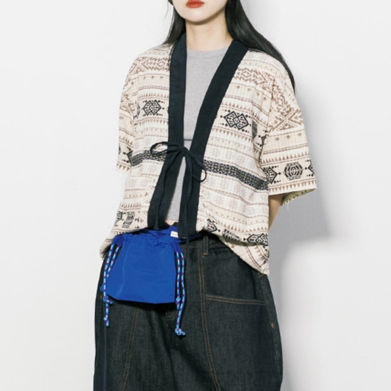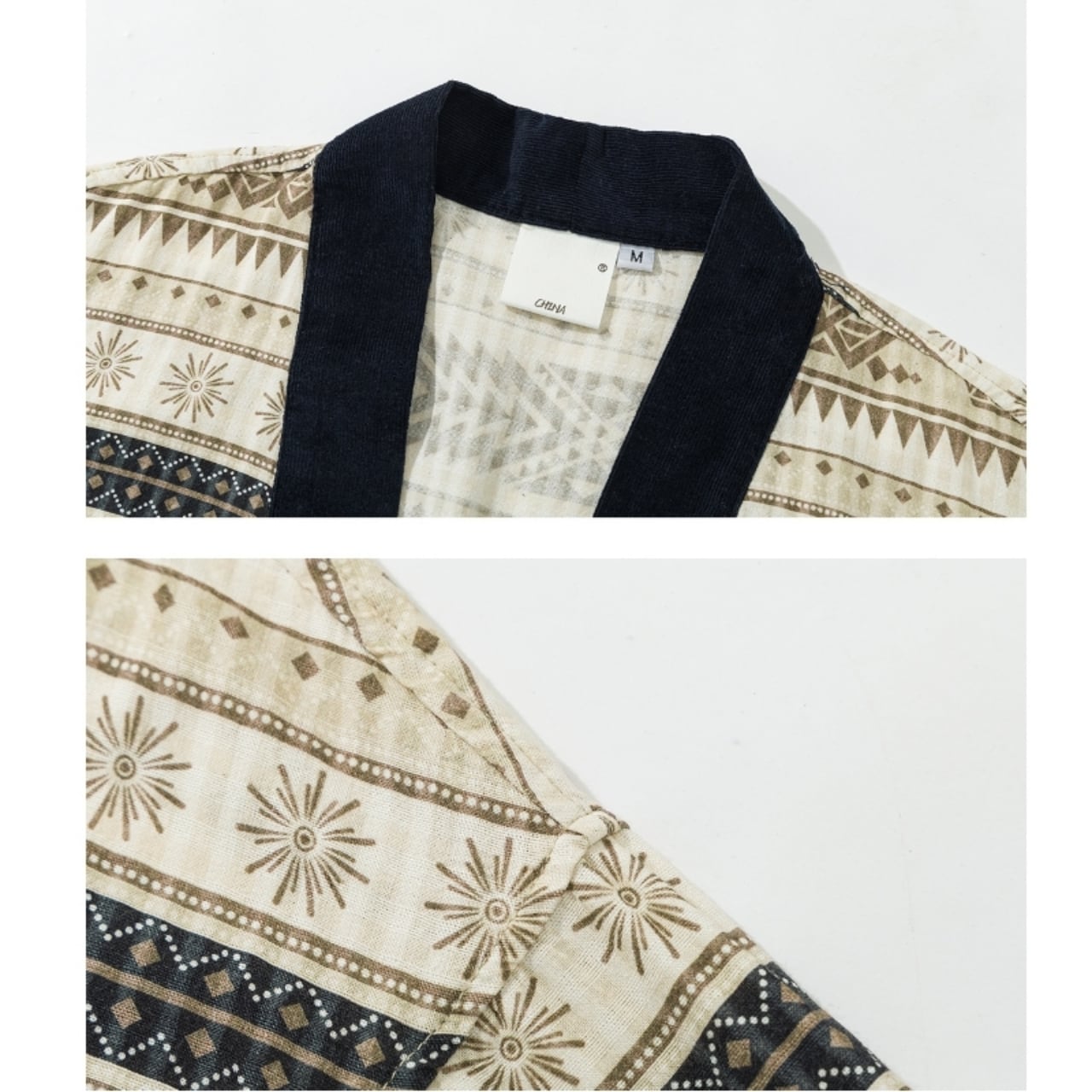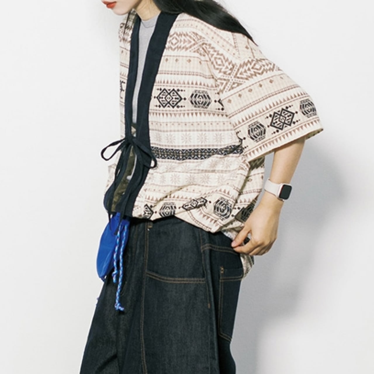 民族的なパターンが目を惹く、フロントオープンシャツ。