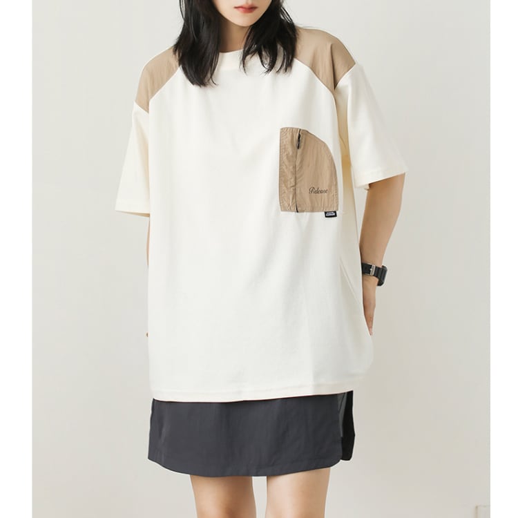 Patchwork Short Sleeve T-Shirt‐2col‐ A0452