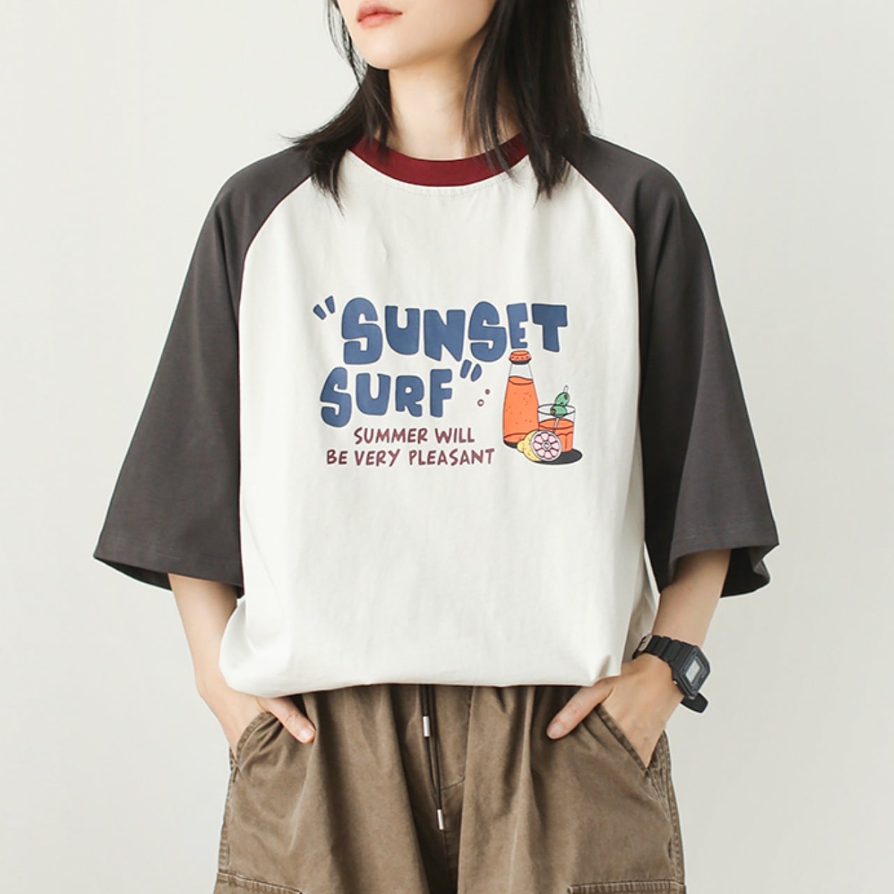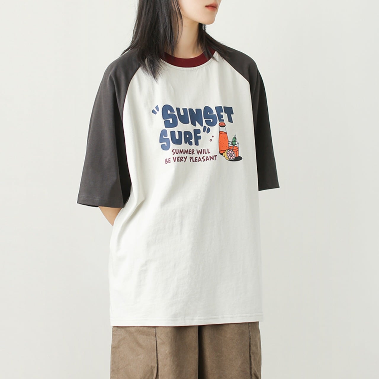 Graphic Print Raglan Sleeve Oversized T-Shirt ‐2col‐ A0354