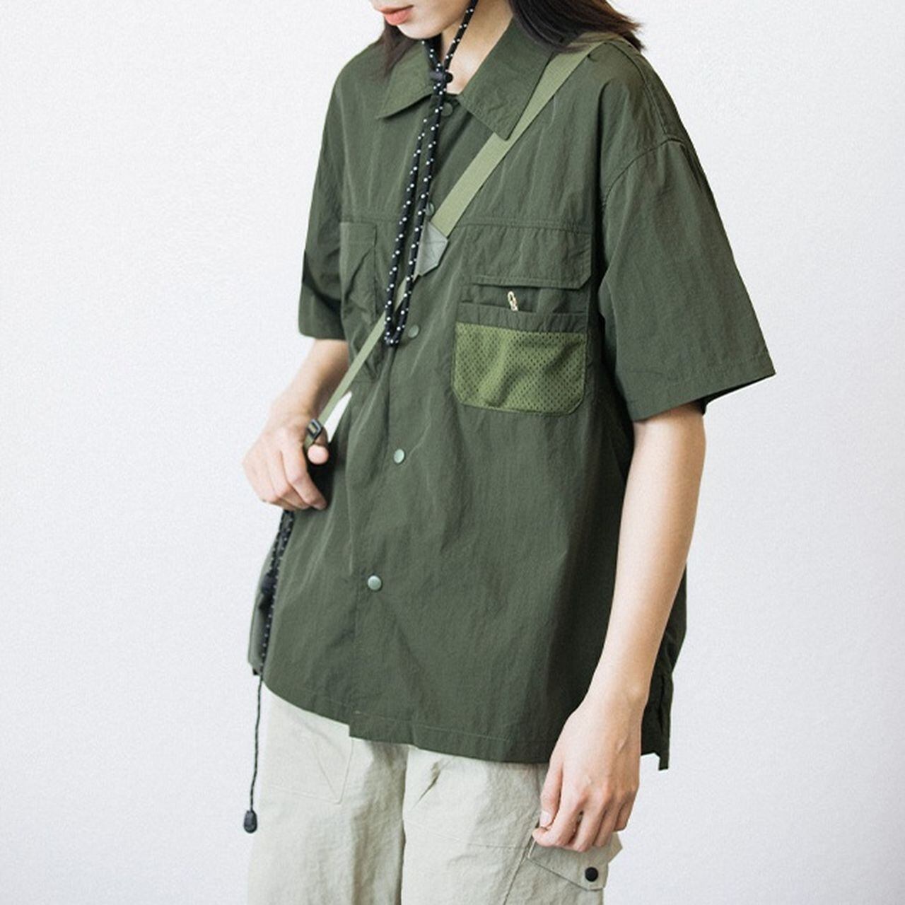 Mesh Panel Short Sleeve Shirt ‐3col‐ A0403
