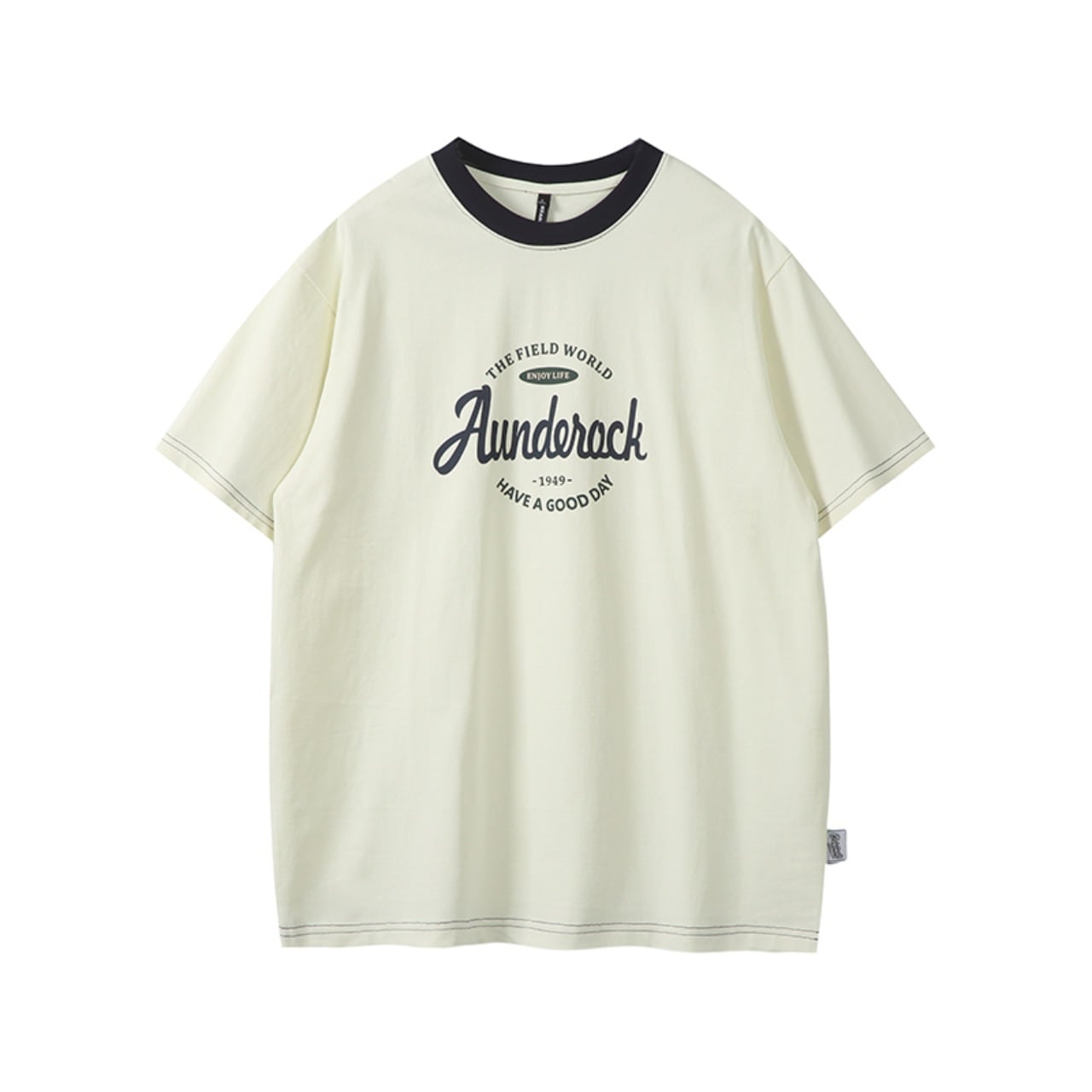クルーネックの半袖で、目を引くロゴがどんなスタイルにも合わせやすい◎
