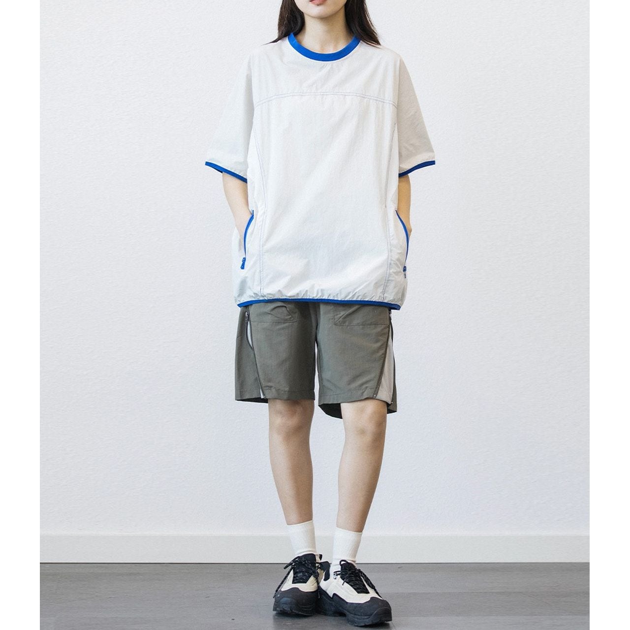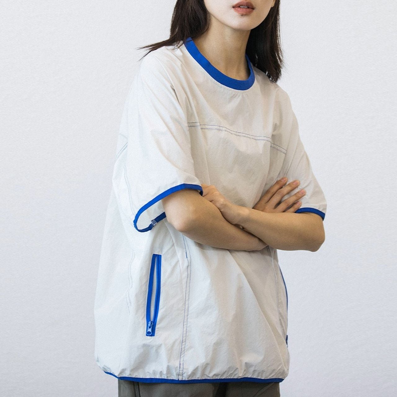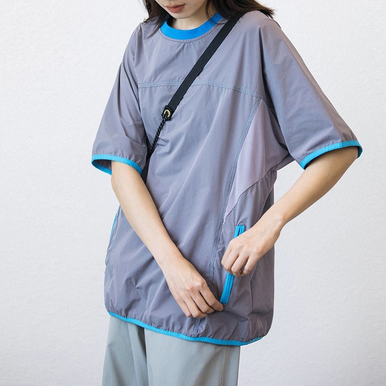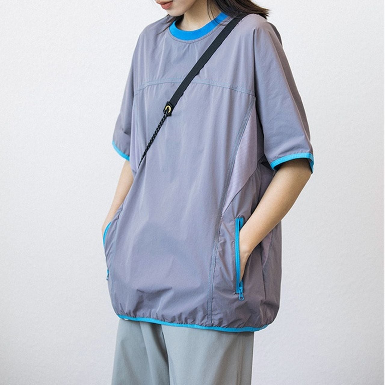 サイドポケット付きのドロップショルダーTシャツ。