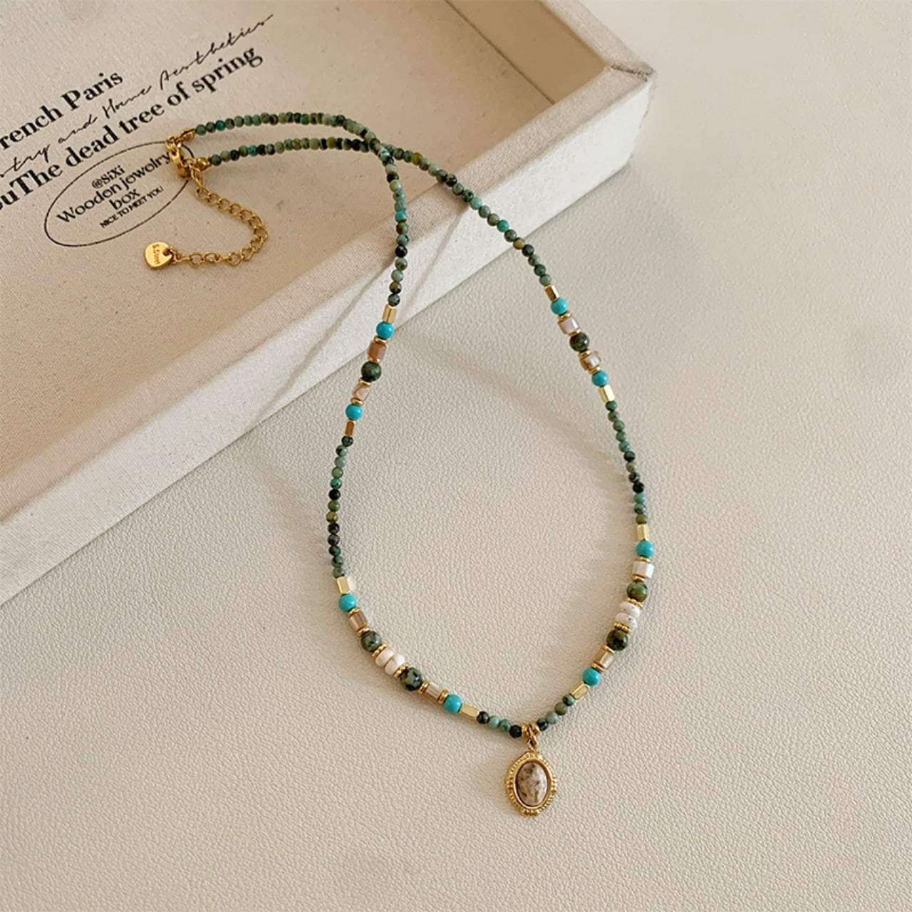 Stone Charm Blue Beads Necklace ‐1col‐ A0391