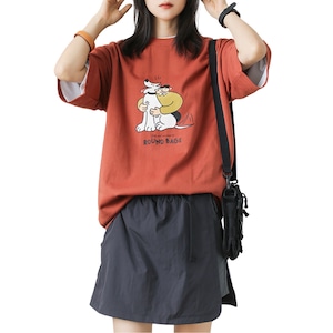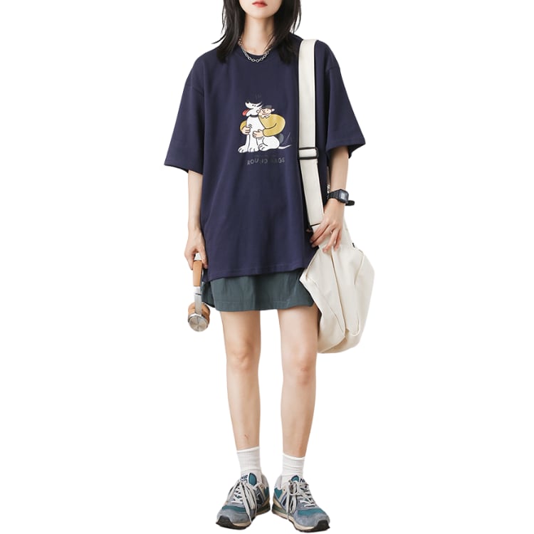 一枚でサマになる、コミックプリントの犬柄Tシャツ。