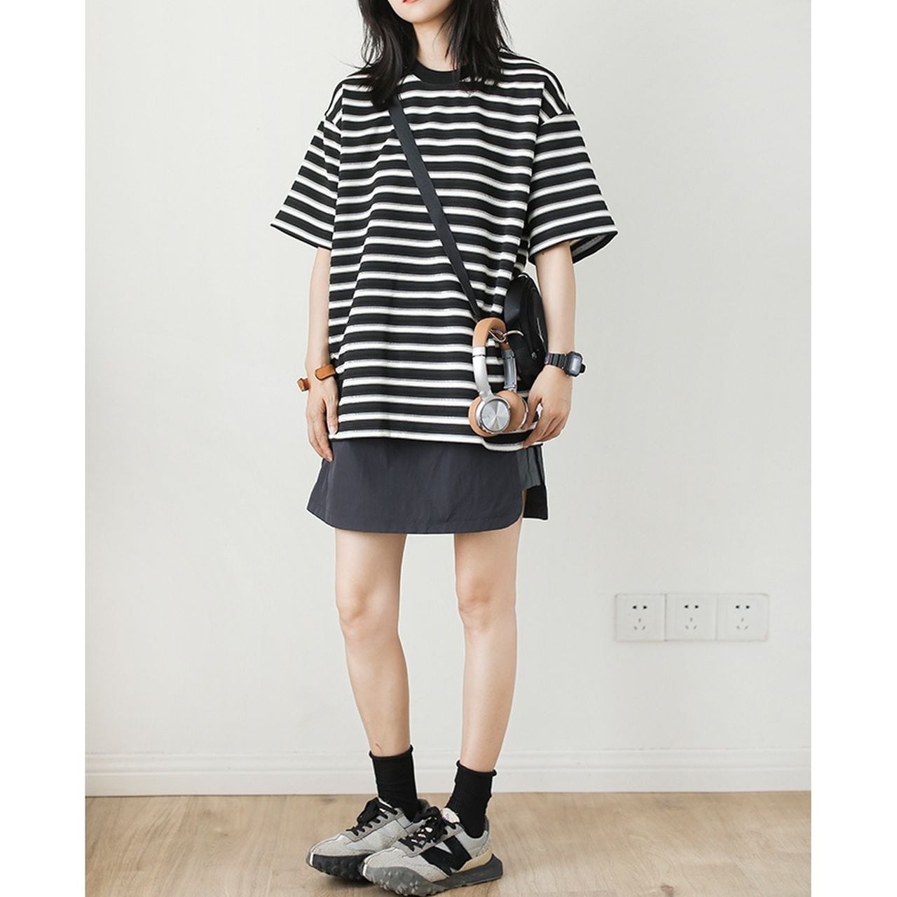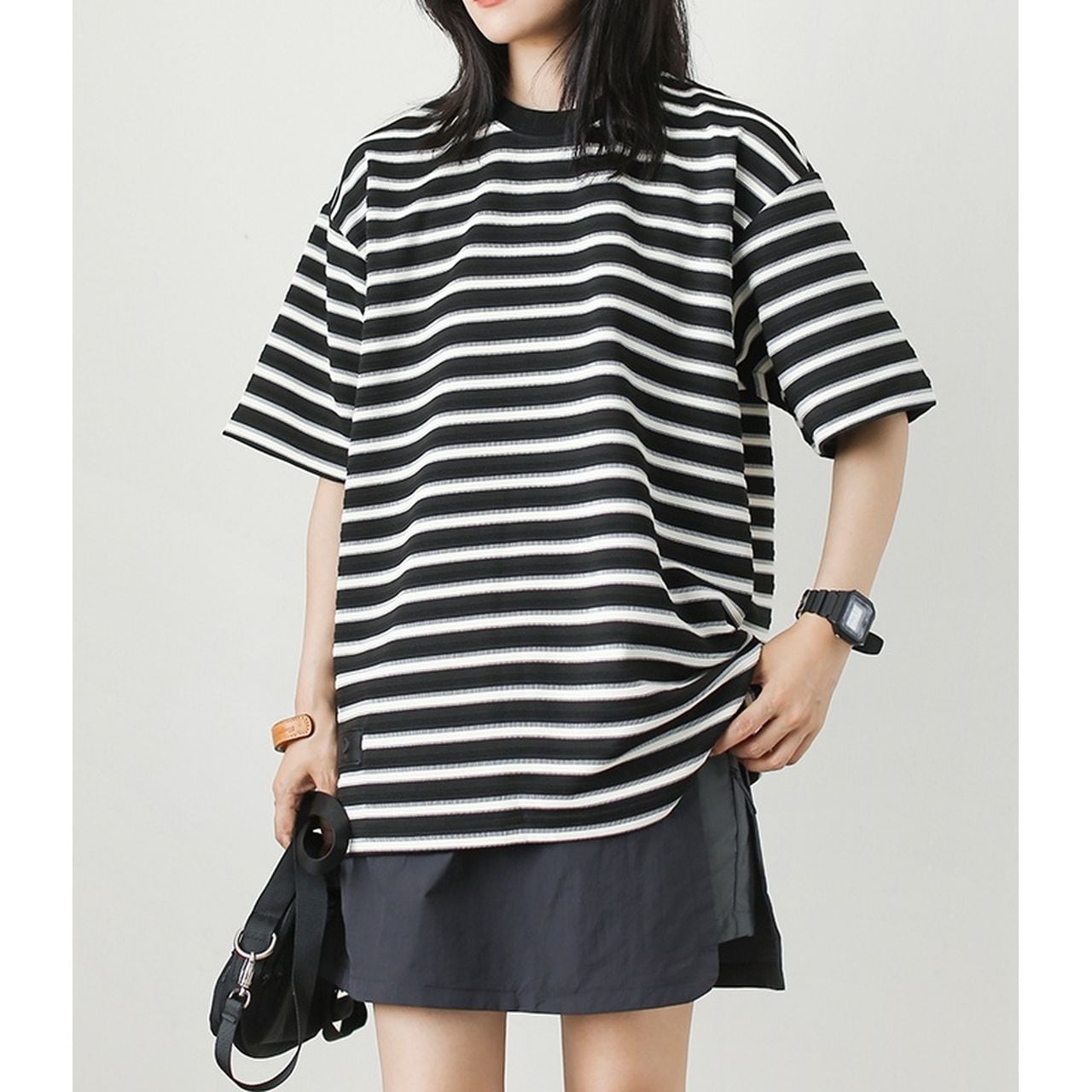 Striped Short Sleeve Crew Neck T-Shirt ‐3col‐ A0453