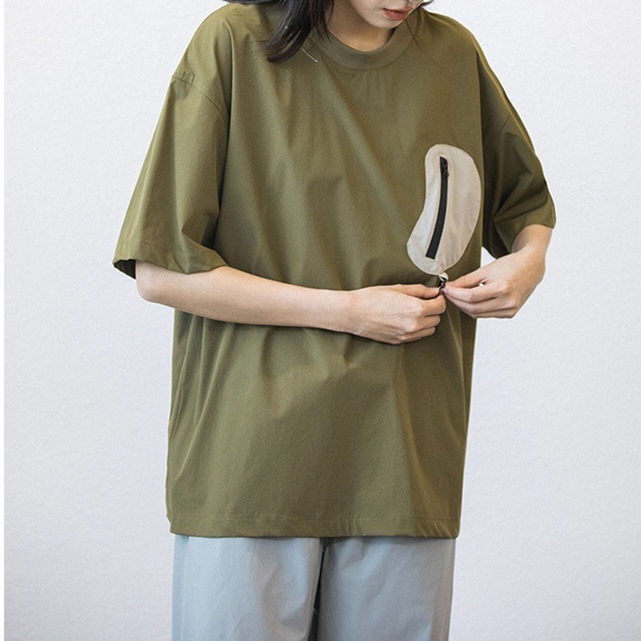 独特のポケットデザインが目を惹く、クルーネックTシャツ。