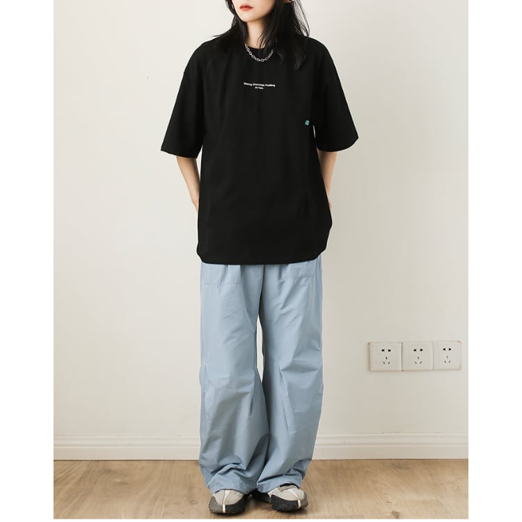 Text Logo Print Crew Neck T-Shirt ‐3col‐ A0459