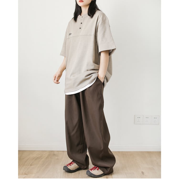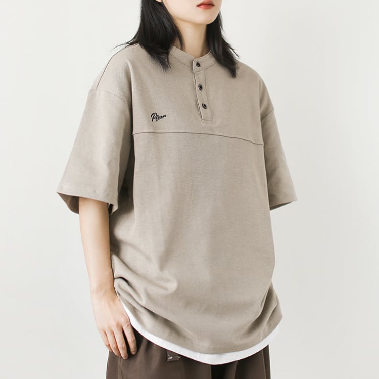Henley Neck Short Sleeve T-Shirt ‐2col‐ A0551