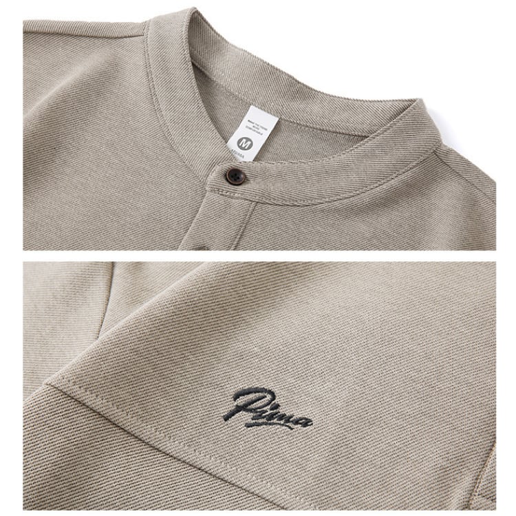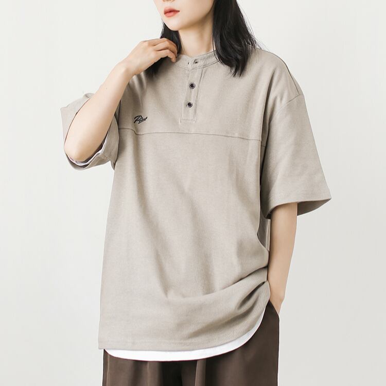 レトロな雰囲気漂うヘンリーネックTシャツ。