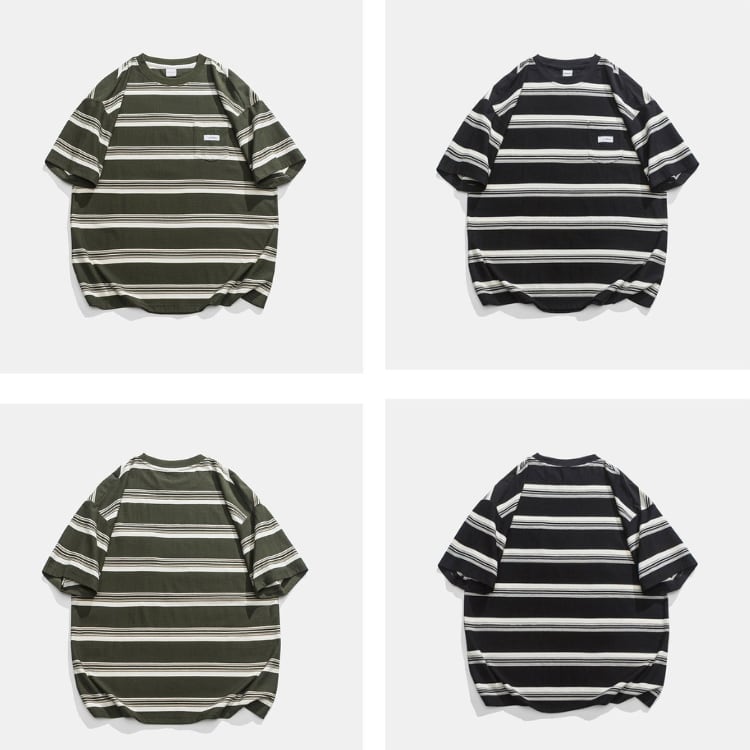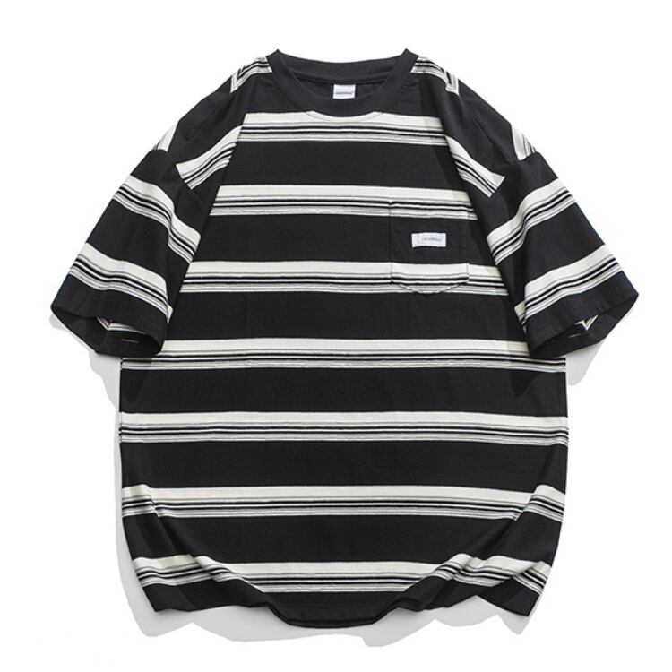 Striped Oversized Short Sleeve T-Shirt ‐2col‐ A0597
