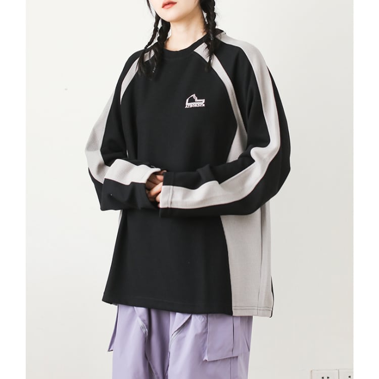 Bicolor Stand Collar Long Sleeve Top ‐2col‐ A0603