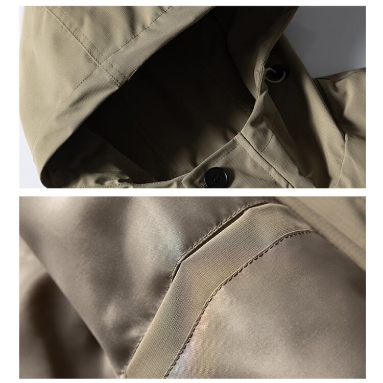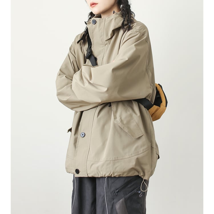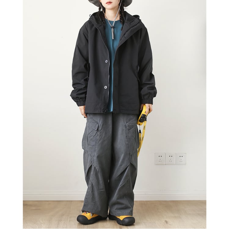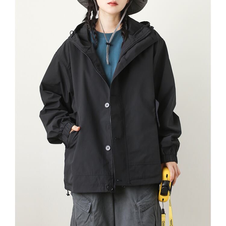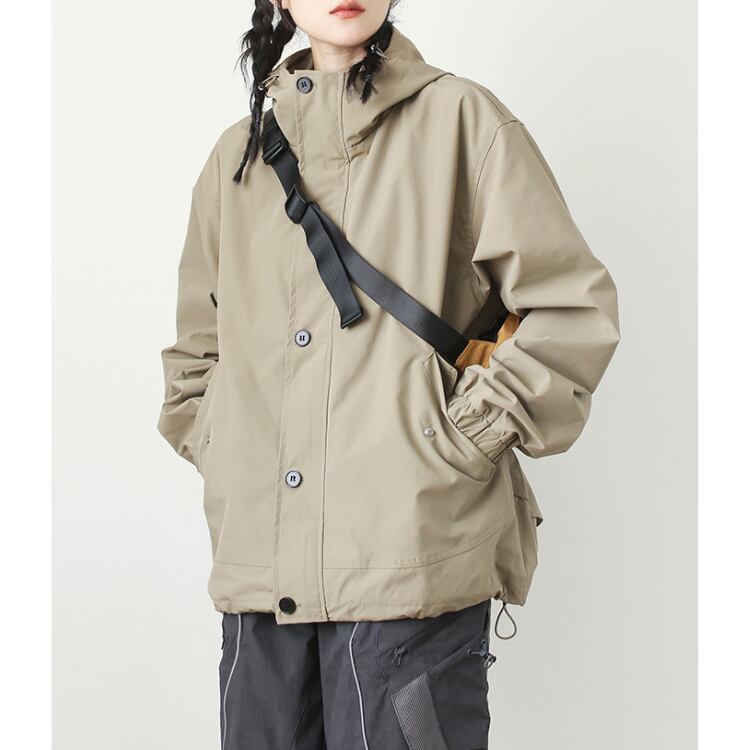フード付きボタンアップジャケット。