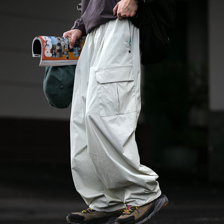 ルーズなシルエットでこなれ感を演出するワイドカーゴパンツ。