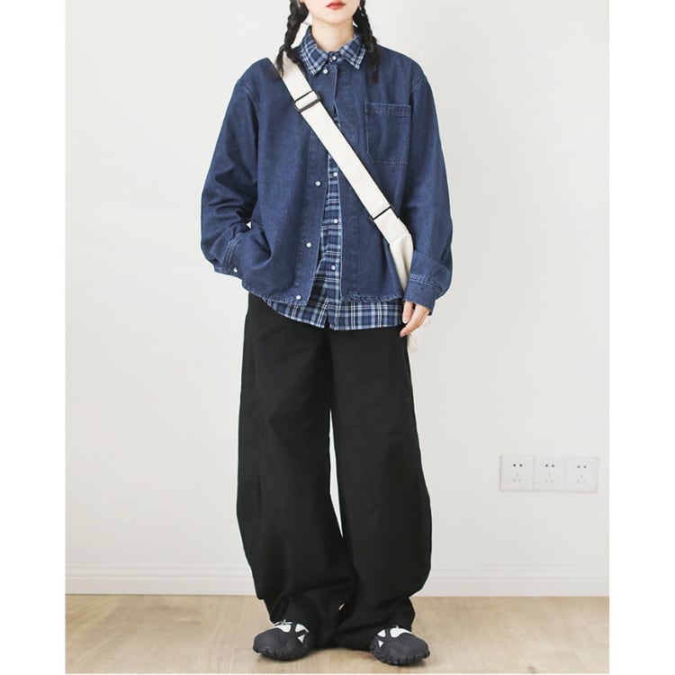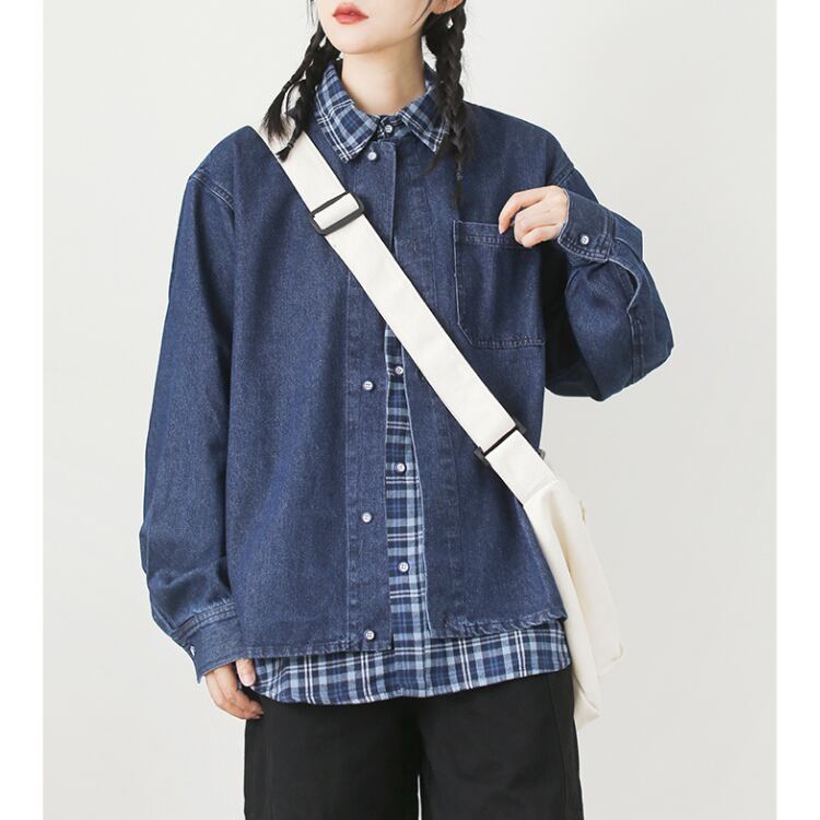 shirt color patch pocket long-sleeve denim shirt ‐1col‐ A0633
