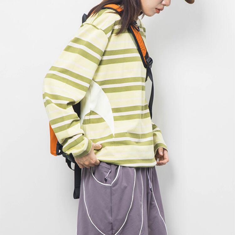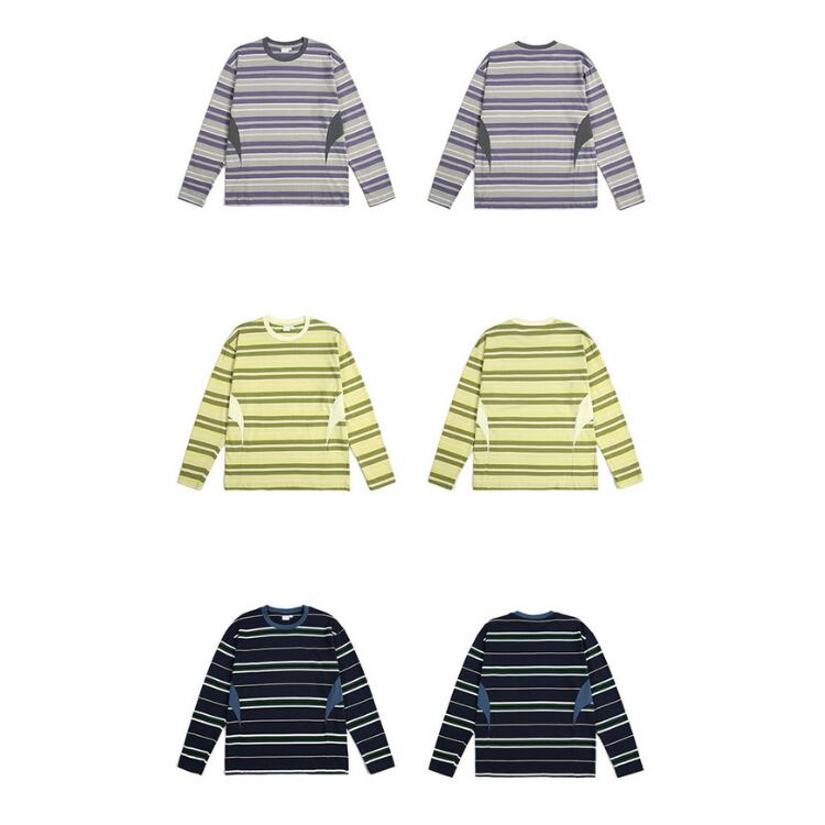 Long Sleeve Border Pattern Loose T-Shirt ‐3col‐ A0643
