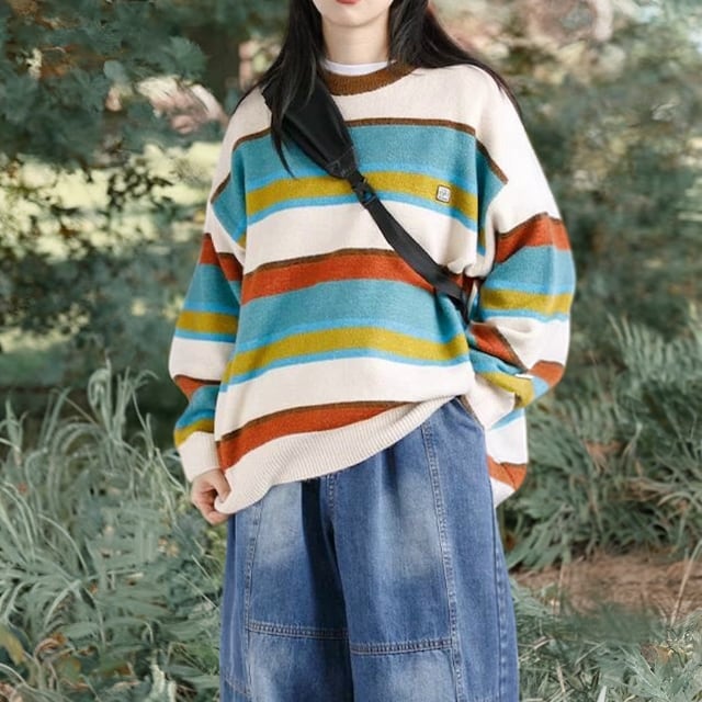 Round neck pullover sweater -2col- A0179