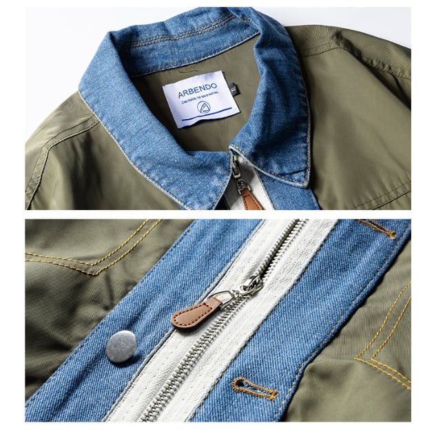 表地は落ち着いた雰囲気のカラーで、デニム生地との切り替えデザインがアクセントになっています。