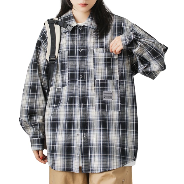 Oversized Check Pattern Shirt ‐1col‐ A0234